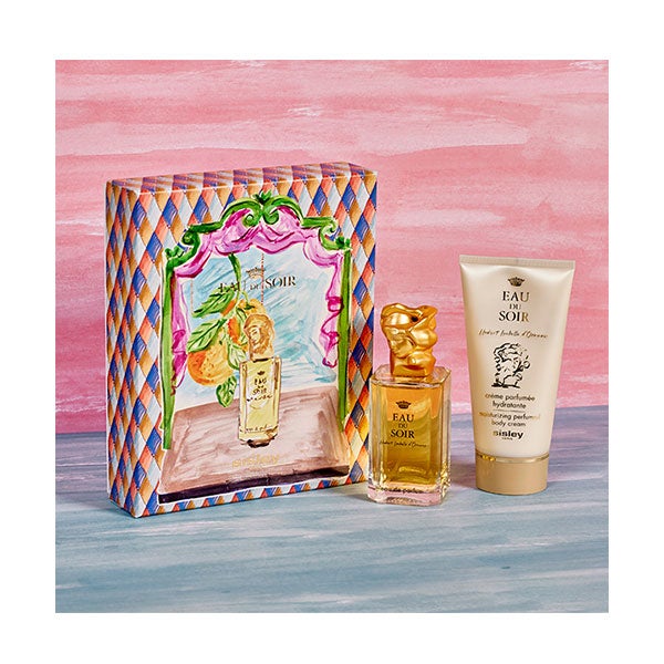 El cofre Eau du Soir de Sisley, creado por el artista y diseñador Luke Edward Hall, resalta la gracia y el refinamiento de esta célebre fragancia. Su decoración, inspirada en un alegre escenario teatral y adornada con cítricos luminosos, transmite la frescura del perfume, entrelazada con la sensualidad de sus notas florales y realzada por un distinguido acorde chipre.