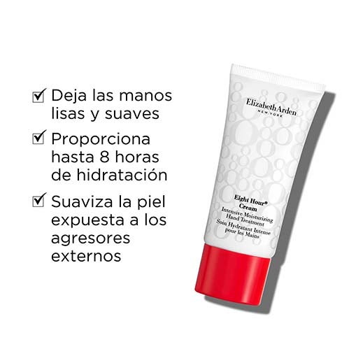 Crema de manos Eight Hour Intensive 30 ml: Su textura ligera se absorbe con rapidez para ofrecer una hidratación inmediata y prolongada de hasta ocho horas. Formulada con emolientes que aportan suavidad y alivio, y vitamina E que contribuye a proteger la piel.