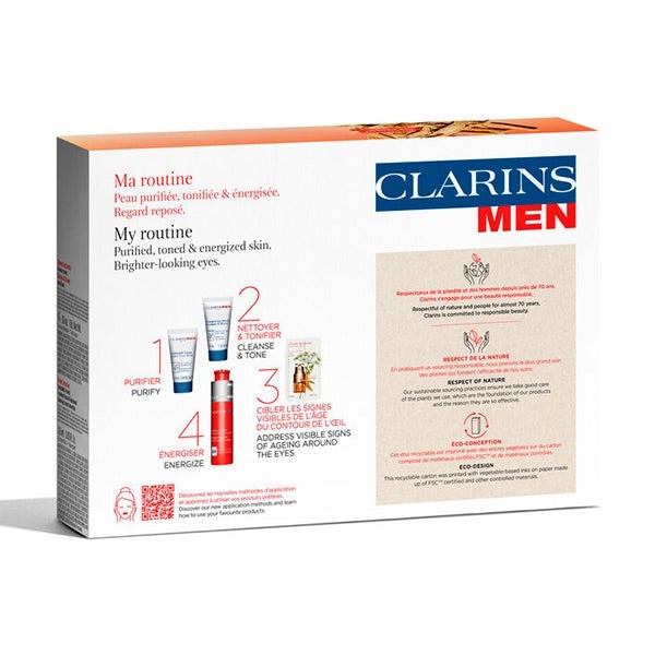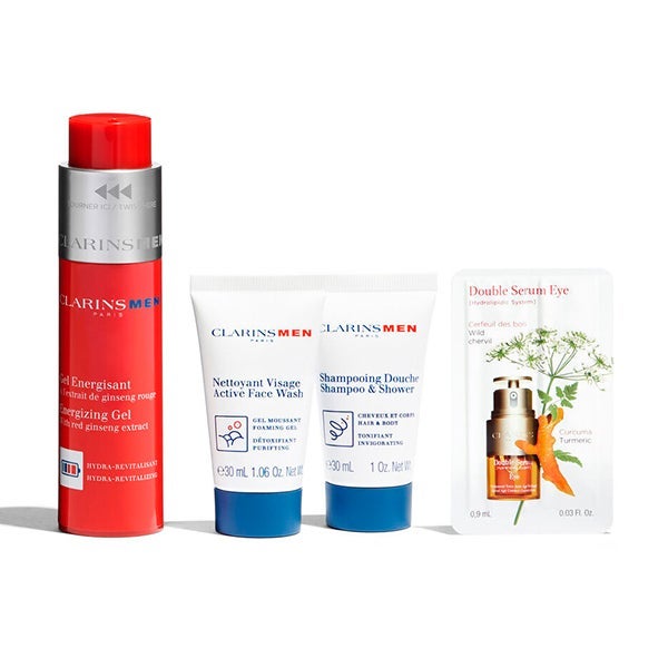 Para potenciar el efecto revitalizante, despierta la mirada cansada aplicando el Gel energizante para ojos ClarinsMen.