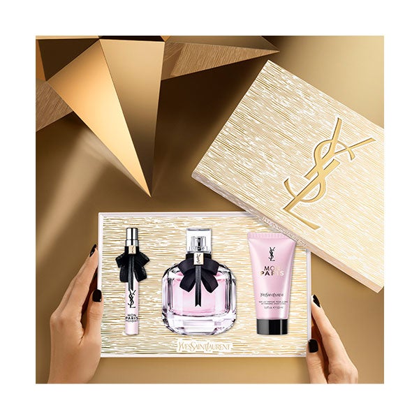 Disfruta la temporada navideña con elegancia gracias al Cofre de Edición Limitada Yves Saint Laurent Mon Paris, una fragancia femenina que encarna la fuerza del amor apasionado. Este sofisticado set contiene el Eau de Parfum de 90 ml, un formato de viaje de 10 ml y la Loción Corporal de 50 ml, creando un ritual de perfume completo.