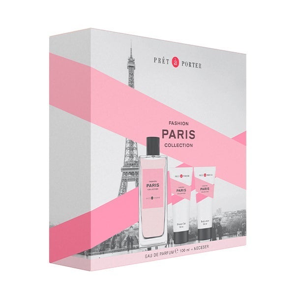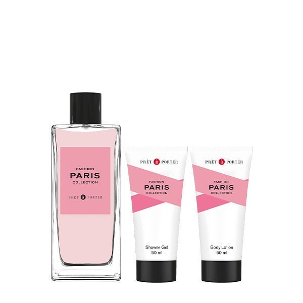 Bienvenida a la capital del estilo, delicada y romántica. Esta Eau de Parfum femenina encarna una cautivadora esencia floral centrada en la rosa. Paris comienza con una deliciosa fusión de mandarina y grosella negra, acentuada por la vivacidad de la pimienta rosa. En el corazón, emerge un sofisticado acorde de macaron de Ispahan acompañado por un bouquet floral de rosa y jazmín. Finalmente, la fragancia descansa sobre una base refinada de maderas, envuelta en suaves matices de almizcle y ámbar. Inspirado en la elegancia moderna, su frasco rectangular destaca por su diseño minimalista y chic. Prêt à Porter te propone un viaje olfativo lleno de moda, recorriendo las ciudades más elegantes del planeta. Los Eau de Parfums de la Fashion Collection evocan la energía de las pasarelas más icónicas del mundo. Déjate transportar por el espíritu de París, Milán, Tokio, Nueva York, Londres y Berlín, en un recorrido por su estilo más exclusivo. Con Prêt à Porter siempre estarás en sintonía con la moda. Vive la sofisticación parisina con la fragancia, la crema corporal y el gel de ducha Paris Prêt à Porter. Consigue una experiencia floral completa combinando los tres productos. Este set de regalo contiene:
