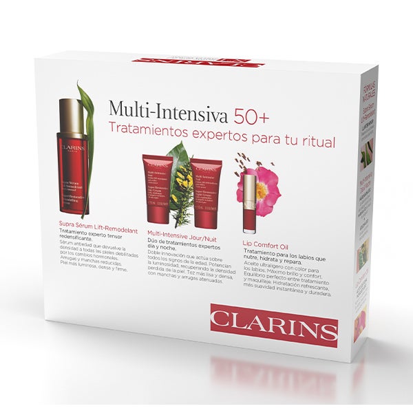 El Cofre Supra Serum + Multi Intensiva de Clarins reúne una rutina de cuidado integral diseñada para pieles maduras que desean recuperar firmeza, densidad y energía. Incluye Supra Serum 50 ml, un concentrado de alto rendimiento que ayuda a atenuar los signos del envejecimiento y favorece la regeneración cutánea, junto con la nueva