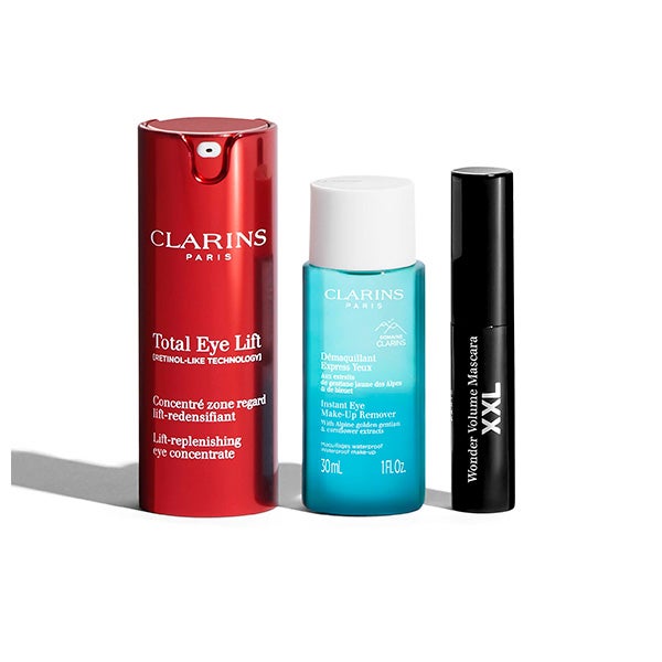 Aplica Total Eye Lift mañana y noche sobre el contorno de ojos ejerciendo suaves presiones desde el lagrimal hacia las sienes. Antes, limpia la zona con el desmaquillante bifásico y finaliza el ritual pasando la máscara Wonder Volume XXL desde la raíz hasta las puntas para intensificar la mirada.