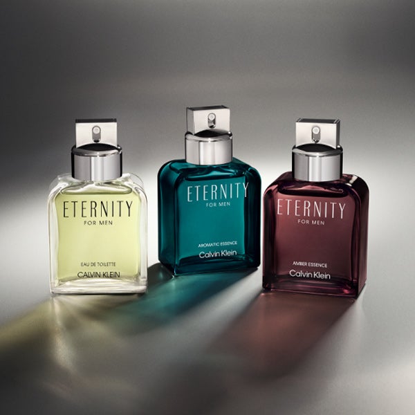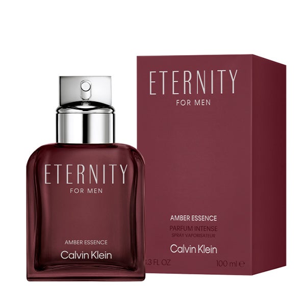 El diseño icónico y sofisticado de Calvin Klein ETERNITY para hombre se reimagina en esta versión AMBER ESSENCE Perfume Intense, que destaca por su frasco burdeos profundo con detalles metálicos plateados.