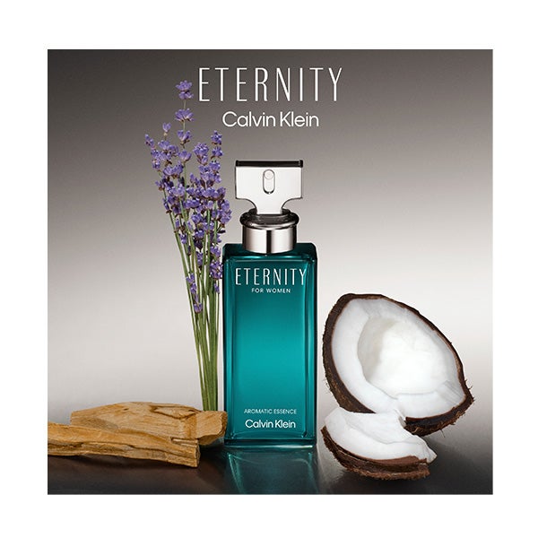 ETERNITY AROMATIC ESSENCE para mujer combina un fascinante contraste entre flores frescas y aromáticas y un fondo gourmand, sumándose como la más reciente creación de la línea de perfumes ETERNITY de Calvin Klein.