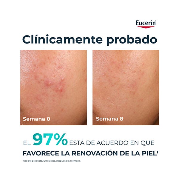 Eucerin DERMOPURE OIL CONTROL Tratamiento 10% Hidroxiácidos demuestra resultados visibles desde la primera semana de uso, revelando progresivamente una piel más uniforme y con aspecto más suave.