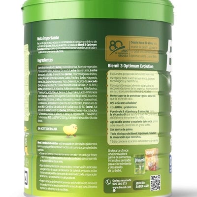 Descubre el futuro de la nutrición infantil con Blemil 3 Optimum Evolution 0%, la elección más avanzada y cuidadosa para el crecimiento saludable de tu hijo. ¡Haz de cada sorbo un paso hacia un desarrollo óptimo!