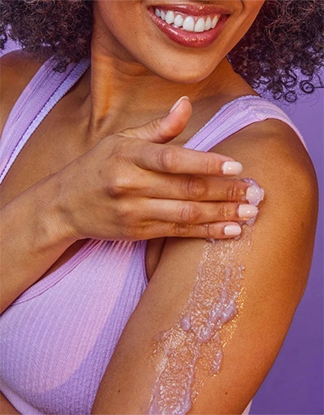 Contiene una mezcla de azúcar, manteca de karité, hongo de nieve, magnesio, amatista en polvo y aceites naturales como los de onagra, aguacate, macadamia, almendra dulce, cártamo y naranja, que ayudan a dejar la piel suave y deliciosamente perfumada.