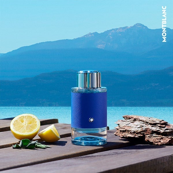 Montblanc Explorer Ultra Blue es una fragancia singular que invita a sumergirse en los distintos matices del azul natural: el del cielo, el del océano y el de las cumbres heladas.