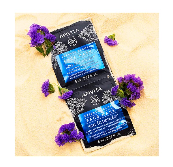 La mascarilla facial con lavanda de mar, el azul eterno de las orillas mediterráneas, refuerza la barrera hidrolipídica de la piel y brinda una potente acción antioxidante.