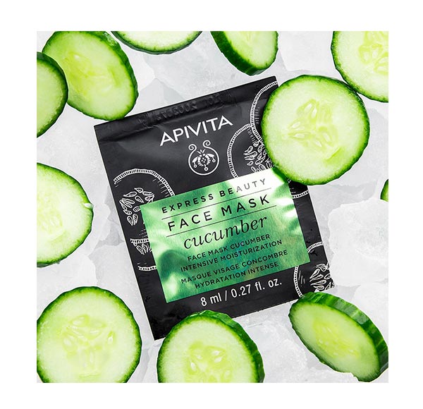 La mascarilla facial con pepino, que contiene un 97% de agua, proporciona una hidratación intensa y una inmediata sensación refrescante.