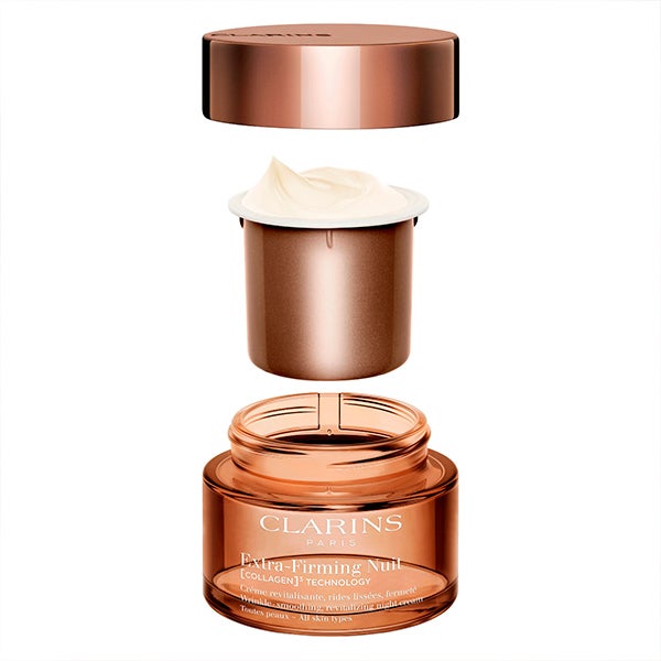 Con el uso, las arrugas se difuminan, los pómulos recuperan volumen y el óvalo facial se redefine. Su textura envolvente, creada por los Laboratorios Clarins, aporta una sensación de bienestar sin efecto graso. Además, las cremas Extra-Firming son recargables, reafirmando el compromiso con la sostenibilidad.