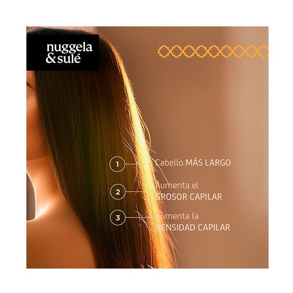 - Proteína Hidrolizada de Soja: suministra azúcares al folículo piloso, prolongando la fase anágena que define la densidad y volumen del cabello. Refuerza las raíces y ayuda a prevenir la calvicie.