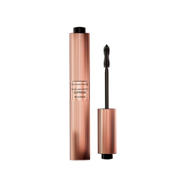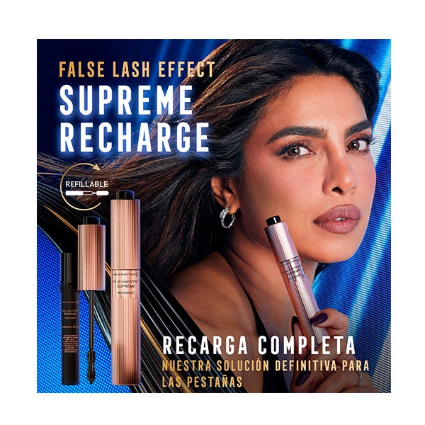 Experimenta el poder definitivo para tus pestañas con Max Factor False Lash Effect Supreme Recharge, la primera máscara de pestañas recargable de la marca. Proporciona hasta 7 veces más volumen al instante y, al mismo tiempo, embellece tus pestañas haciéndolas lucir visiblemente más densas, fuertes y saludables en solo 4 semanas. Su exclusivo cepillo moldeador, con cerdas especialmente diseñadas, envuelve cada pestaña de raíz a punta, aportando un resultado inmediato de efecto postizo, máxima intensidad y volumen total. La fórmula enriquecida con sérum de Keratina actúa como un tratamiento continuo que fortalece progresivamente las pestañas. Además, su moderno diseño tecnológico permite una recarga sencilla y rápida en apenas un minuto, creando una experiencia sostenible y práctica: ¡recarga, rellena y repite sin fin!