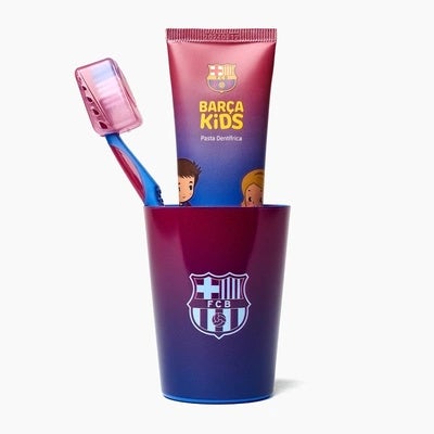 Haz que la higiene bucal de los más pequeños sea un momento entretenido con el Super Kit de Cuidado Dental Infantil del FC Barcelona. Contiene cepillo dental, pasta, vaso y un neceser muy práctico, inspirando a los niños a mantener una limpieza bucal completa con el espíritu orgulloso del Barça. Make brushing time enjoyable with the FC Barcelona Kids’ Dental Care Super Kit. This set features a toothbrush, toothpaste, cup, and a