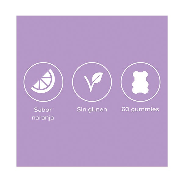 Presentación: 90 gummies. Producto Sin Gluten y Sin Lactosa.