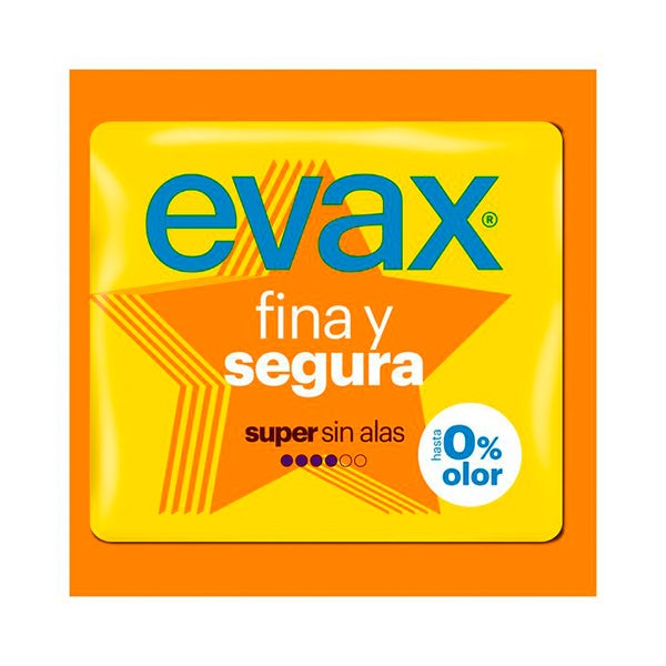 Su formato delgado de Evax Fina y Segura brinda una sensación de mayor confort. Incorporan el Sistema No Olor y un núcleo altamente absorbente que aporta seguridad y protección continua a lo largo del día.