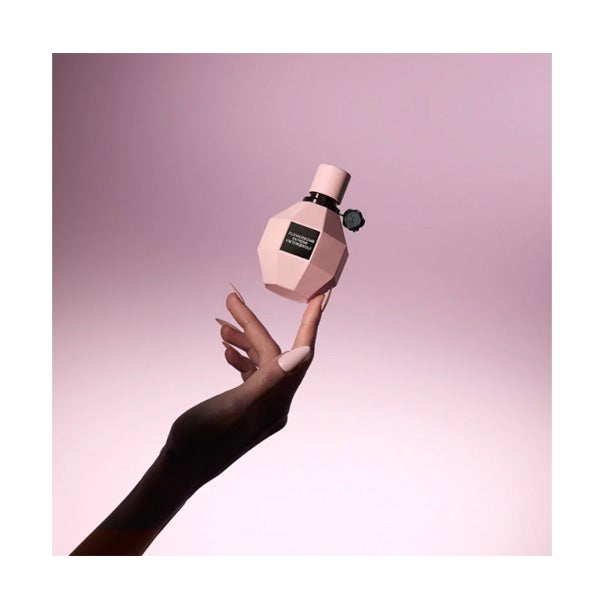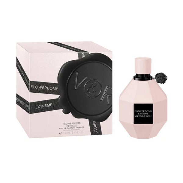 El frasco de Flowerbomb Extreme se presenta en un sofisticado acabado rosa mate, realzado con el emblemático sello negro de Viktor & Rolf. Su diseño contemporáneo refleja la fuerza y el refinamiento propios de esta fragancia.