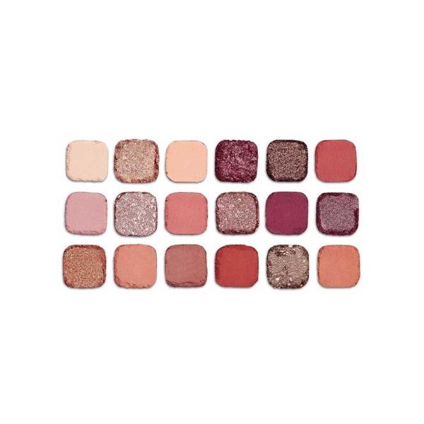 Paleta de sombras para ojos que combina acabados mate y brillantes en una gama de tonos rosados.
