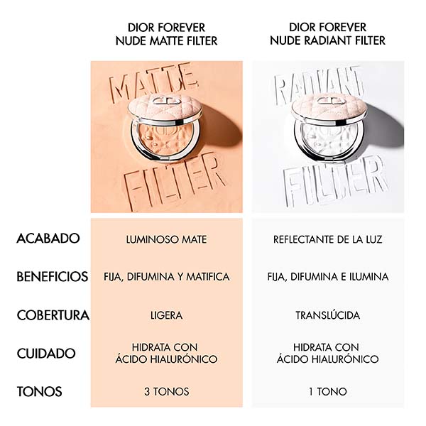 El auténtico efecto filtro. Dior Forever presenta su primer polvo fijador con un acabado que ilumina y suaviza, formulado con ácido hialurónico. Ayuda a mantener el maquillaje impecable desde la mañana hasta la noche, resaltando el resplandor natural de la piel sin sacrificar la hidratación.