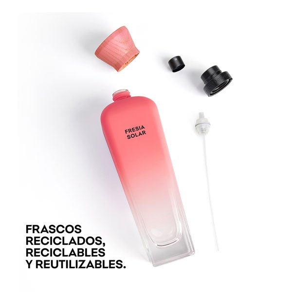 Elaborado con vidrio reciclado, reciclable y reutilizable infinitamente, gracias a su práctico sistema de rosca.