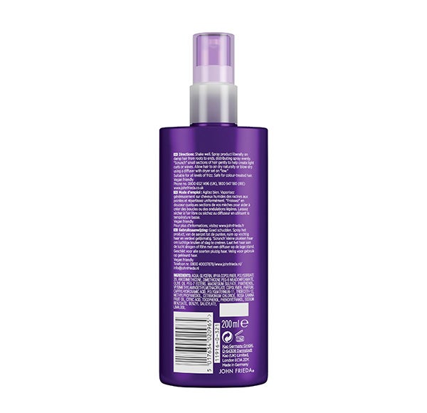 Este spray de peinado, enriquecido con agentes de acondicionamiento y brillo, controla el encrespamiento para lograr una textura suave y sedosa, al mismo tiempo que brinda protección frente al calor.