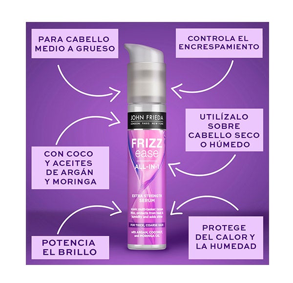 Elimina al instante el encrespamiento y protege frente a la humedad mientras aporta defensa térmica al cabello.