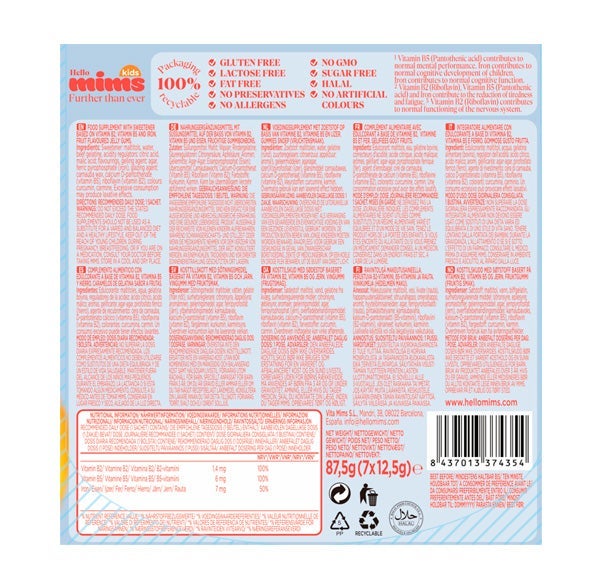 Gominolas sin azúcar enriquecidas con vitaminas y minerales que favorecen el desarrollo intelectual infantil, potenciando su capacidad mental y contribuyendo positivamente a su autoestima.