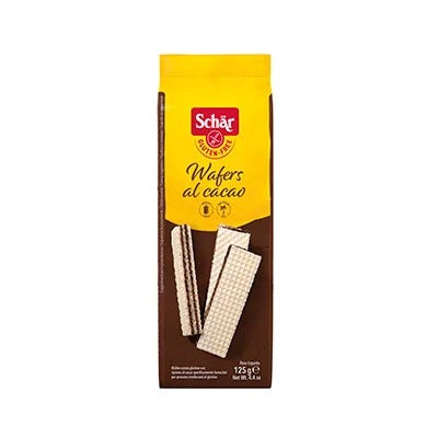 Barquillos al cacao sin gluten. Alimento apto para dietas sin gluten. Preparado con materias primas naturalmente exentas de gluten y trigo. Puede contener trazas de avellanas y de proteínas de leche. Sin lactosa.