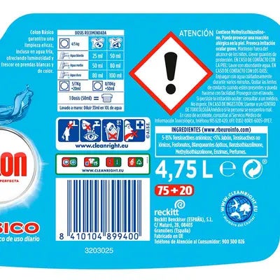 Gel basico en formato grande 4,75 litros 95 dosis diseñado para cubrir las necesidades del día a día.