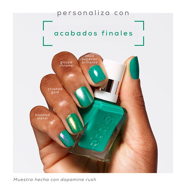 Dale un toque único a tu manicura con los cuatro acabados nuevos: BLUSHED METAL, CRUSHED GOLD, GLAZED CHROME y STRUT.