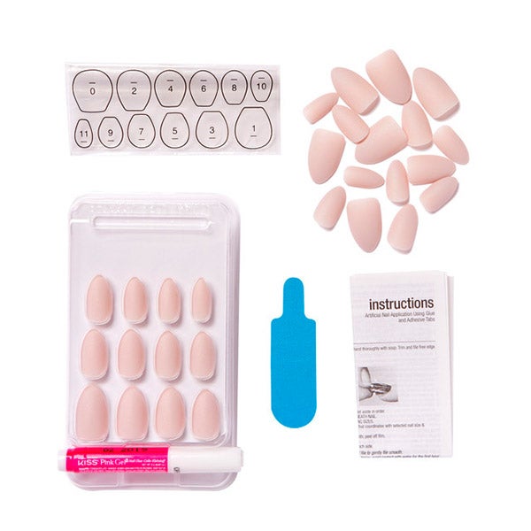Incluye 28 uñas, 28 pestañas megaadhesivas, pegamento de gel rosado (2 g), stick de manicura y mini lima.