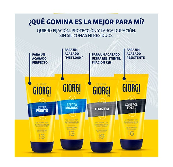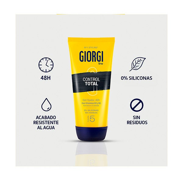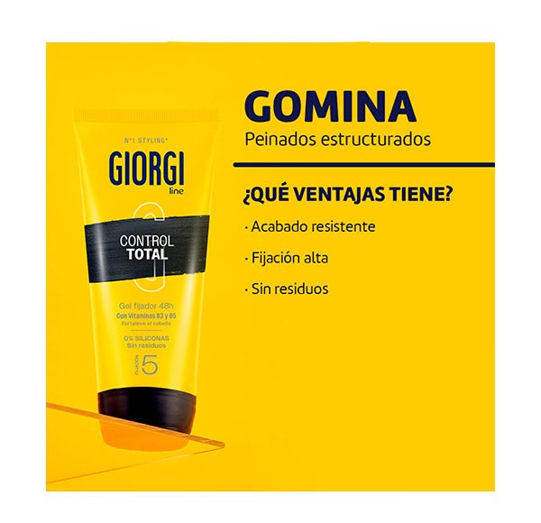 Descubre la Gomina Control Total de Giorgi, que ofrece una fijación duradera y resistente.