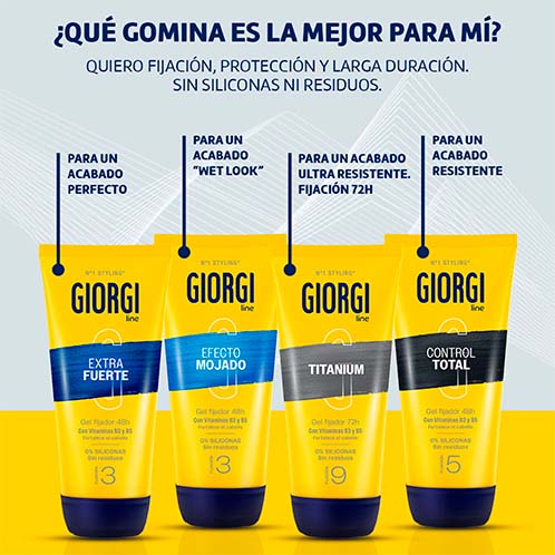 Descubre la Gomina Extrafuerte de Giorgi, diseñada para ofrecer un acabado duradero y de aspecto cuidado incluso con un uso frecuente.