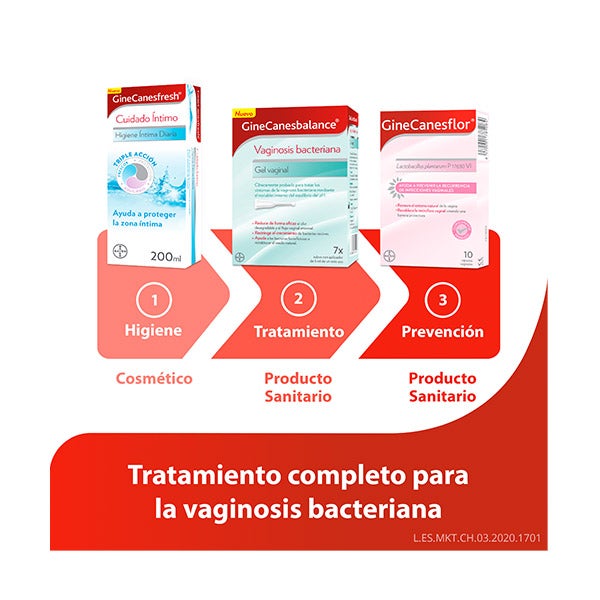 GineCanesbalance® es un gel vaginal diseñado para tratar y aliviar los síntomas de la vaginosis bacteriana (VB). Este producto ofrece un enfoque eficaz y seguro para mejorar el bienestar íntimo, proporcionando un alivio rápido de las molestias más comunes de la VB, como el olor vaginal desagradable, el flujo anormal y la sensación de incomodidad en la zona íntima. Beneficios principales de GineCanesbalance® Reduce el olor desagradable y el flujo anormal de manera eficaz desde los primeros usos. Restaura el equilibrio natural del pH vaginal , creando un entorno óptimo para la salud íntima. Restringe el crecimiento de bacterias nocivas que provocan el desequilibrio. Favorece la recuperación de la microbiota vaginal beneficiosa , ayudando a que las bacterias ácido-lácticas vuelvan a desarrollarse de forma natural. Fórmula y composición El gel contiene ingredientes clave para el cuidado y la recuperación del equilibrio vaginal: Ácido láctico , que ayuda a restablecer el pH natural y neutralizar los malos olores. Glucógeno , que actúa como fuente de nutrientes para las bacterias beneficiosas, estimulando su crecimiento. Libre de hormonas y conservantes, lo que lo convierte en una opción adecuada para un uso delicado y seguro. Presentación y modo de uso GineCanesbalance® se presenta en un envase con 7 aplicadores higiénicos de un solo uso , cada uno con 5 ml de gel, diseñados para una aplicación sencilla, limpia y discreta. Seguridad y respaldo médico Se trata de un producto sanitario que cumple con la normativa vigente en Europa. Antes de iniciar el tratamiento, es importante contar con un diagnóstico médico que confirme la presencia de vaginosis bacteriana , garantizando así el uso adecuado del gel. Con GineCanesbalance®, las mujeres pueden recuperar la sensación de frescura, confort y bienestar íntimo de manera práctica y segura.