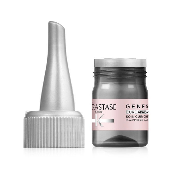 Kérastase Genesis Cure Apaisante Anti-Inconforts es un tratamiento intensivo de 4 semanas destinado a aliviar y proteger el cuero cabelludo sensible. Su acción ayuda a disminuir incómodas sensaciones como picor, irritación e inflamación, contribuyendo a mejorar la calidad y la elasticidad del cuero cabelludo.
