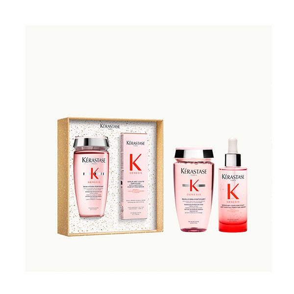 El set Kérastase Génesis Vacaciones 2025 es una edición limitada especialmente creada para el cuidado de cabellos frágiles y con tendencia a la caída por rotura. Este dúo reúne dos tratamientos fundamentales de la gama Génesis: el Champú Bain Hydra-Fortifiant y el Acondicionador Fondant Renforçateur. Su acción conjunta limpia delicadamente y refuerza la fibra capilar desde la raíz hasta las puntas, ayudando a reducir el quiebre y a proteger el cabello.