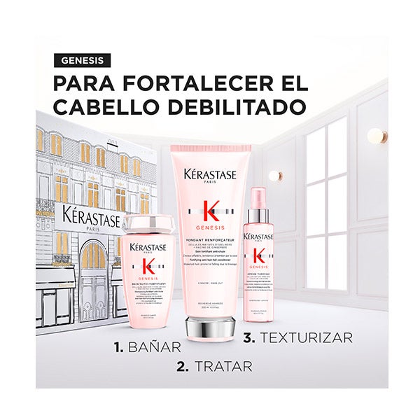 • Défense Thermique, 150 ml Protector térmico fortificante sin aclarado, diseñado para proteger y fortalecer el cabello débil con tendencia a la rotura.
