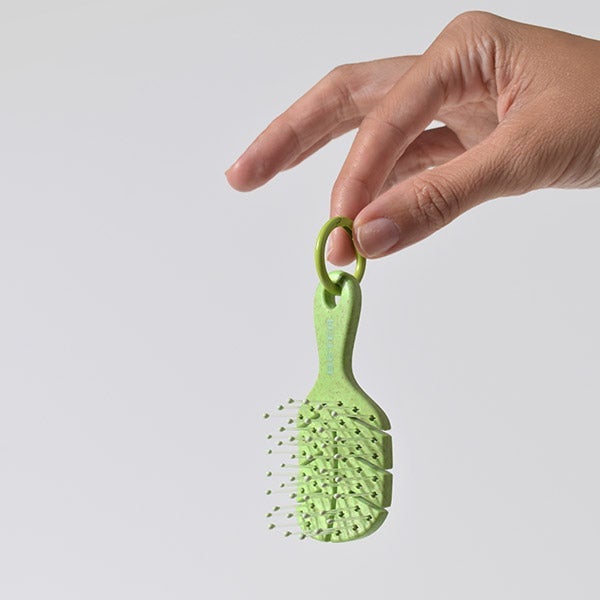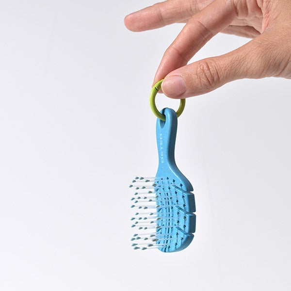 El cepillo más popular en presentación de llavero. Bello y práctico, disponible en 3 tonalidades exclusivas. Con arandela para colgarlo sin esfuerzo y diseño que desenreda suavemente gracias a sus púas y cabezal flexibles.