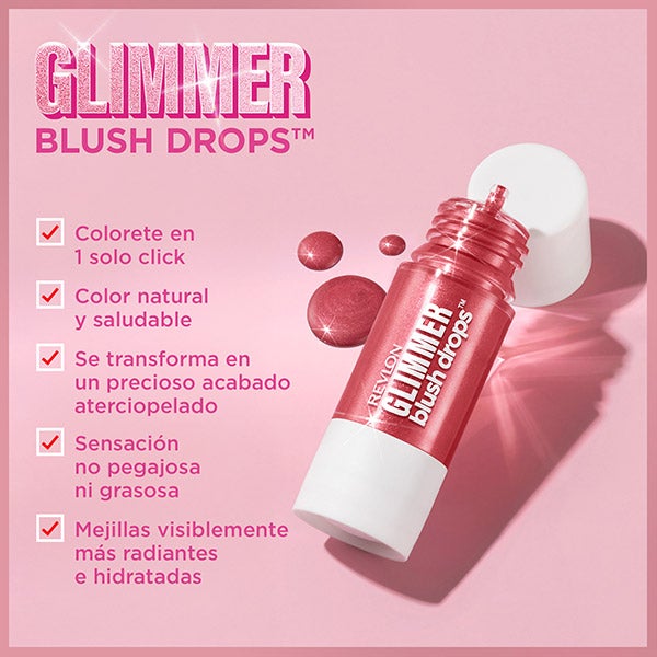 El innovador Revlon Glimmer Blush Drops™ ofrece un rubor natural y luminoso con tan solo una gota.