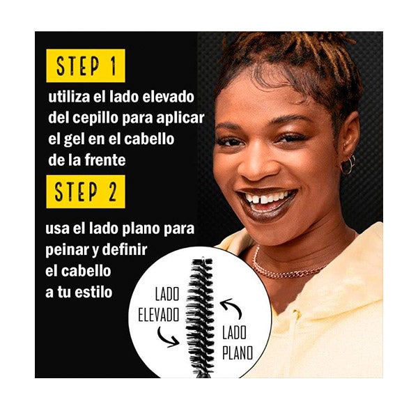 Emplea el lado plano para alisar, fijar y definir el contorno de cejas y cabellos.