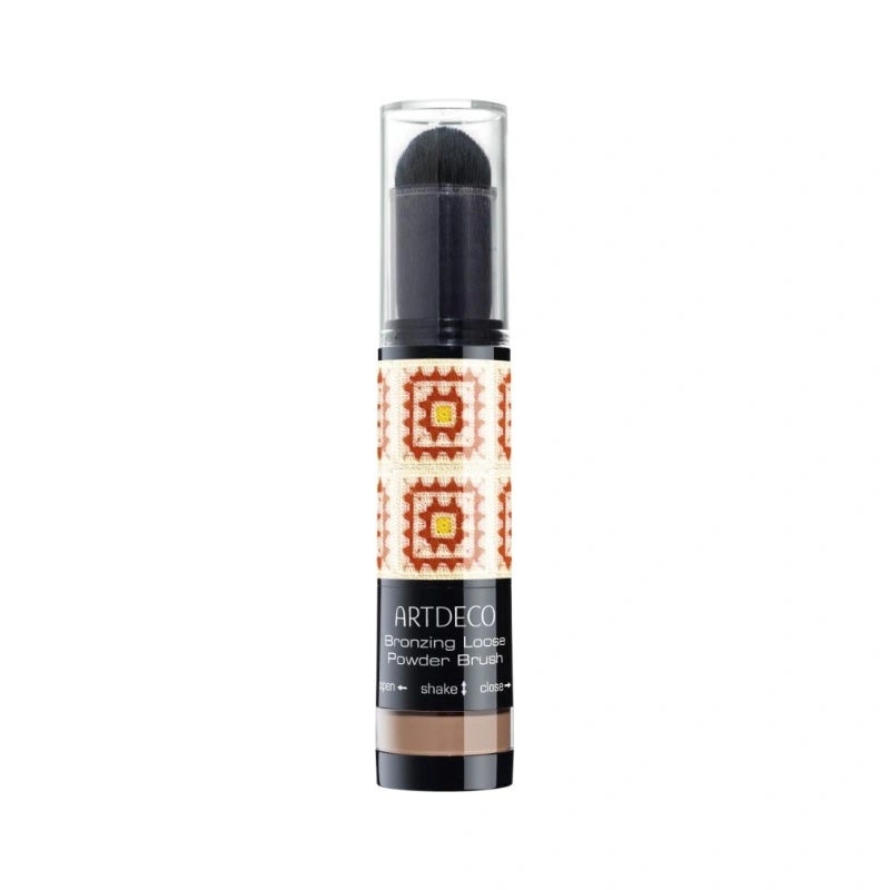 Artdeco Polvos bronceadores sueltos con brocha integrada Un toque de verano en todas partes: la brocha Bronzing Loose Powder Brush, para rostro y cuerpo. Estos polvos sueltos proporcionan un bronceado natural en un abrir y cerrar de ojos. Su textura aterciopelada contiene un sutil perlado que refleja la luz y proporciona a la piel un magnífico tono bronceado. Los polvos son fáciles de aplicar y difuminar. Con su brocha integrada, es ideal para viajar y refrescar tu look en cualquier momento y lugar.