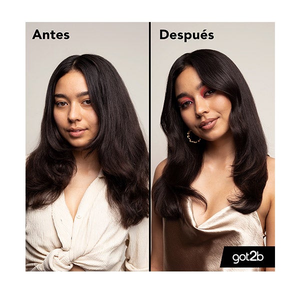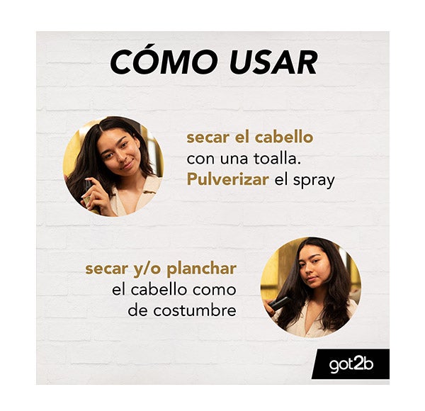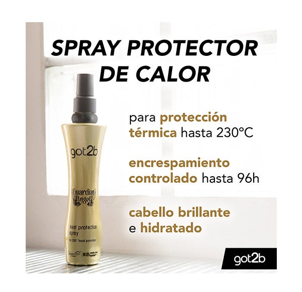Got2b Spray Guardian Angel ofrece una defensa térmica de hasta 220 °C, ayudando a que tu melena resista el calor de planchas, rizadores o secadores, aportando al mismo tiempo un acabado luminoso y brillante.