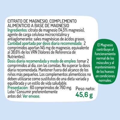 Dosis de 500 mg por comprimido: Aporta una cantidad concentrada de magnesio, optimizando su absorción y efectividad.