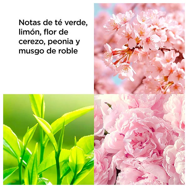 Elizabeth Arden Green Tea & Cherry Blossom Body Mist es una bruma corporal suave y radiante, diseñada para estimular los sentidos y envolver la piel en una fresca sensación de bienestar. Inspirada en la delicada floración del cerezo, esta fragancia femenina une acordes de almendra dulce, flor de cerezo y hojas de té verde, creando un aroma floral con matices dulces y verdes que revitaliza el cuerpo y aporta energía al espíritu.