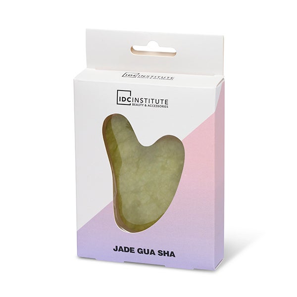 Piedra gua sha de jade natural inspirada en la milenaria práctica de belleza china Gua Sha, reconocida por sus beneficios para mantener la piel saludable y luminosa.