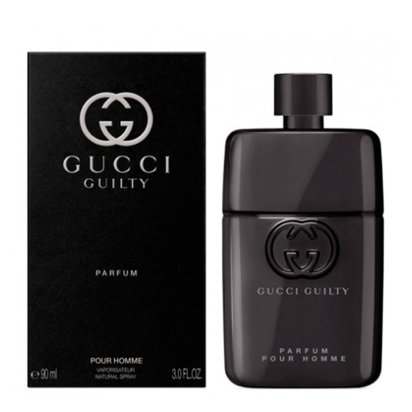 GUCCI Guilty Pour Homme Parfum es una reinterpretación intensa del icónico aroma que invita a romper con las normas y expectativas tradicionales. Pertenece a la familia ámbar amaderada y retoma la esencia emblemática del clásico Gucci Guilty Pour Homme, otorgándole un carácter aún más profundo. Su frasco luce un diseño completamente metalizado, destacado por un acabado en tono antracita oscuro y un tapón a juego.