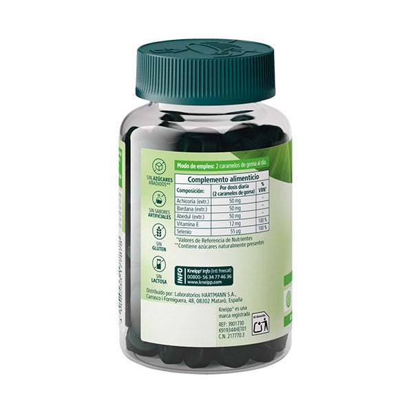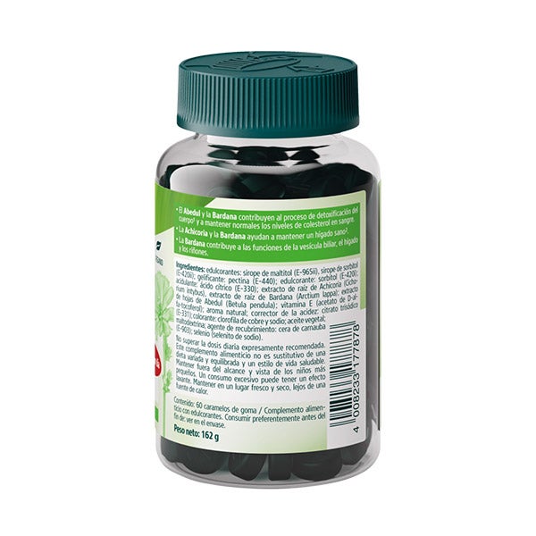 Edulcorantes: sirope de maltitol (E-965ii), sirope de sorbitol (E-420ii); gelificante: pectina (E-440); acidulante: ácido cítrico (E-330); extracto de raíz de achicoria (Cichorium intybus), extracto de raíz de bardana (Arctium lappa), extracto de hojas de abedul (Betula pendula); vitamina E (acetato de D-alfa-tocoferilo); aroma natural; corrector de la acidez: citrato trisódico; colorante: clorofilas y clorofilinas; aceite vegetal; agente de recubrimiento: cera de carnauba (E-903); selenio (selenito de sodio).