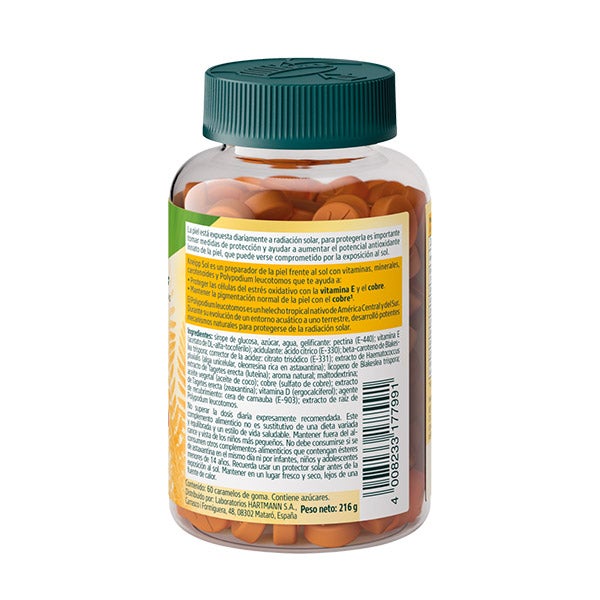 Sirope de glucosa, azúcar, agua, gelificante: pectina (E-440); vitamina E (acetato de DL-alfa-tocoferilo);acidulante: ácido cítrico (E-330); beta-caroteno de Blakeslea trispora; corrector de la acidez: citrato trisódico (E-331); extracto de Haematococcus pluvialis (alga unicelular, oleorresina rica en astaxantina); licopeno de Blakeslea trispora; extracto de Tagetes erecta (luteína); aroma natural; maltodextrina; aceite vegetal (aceite de coco); cobre (sulfato de cobre); extracto de Tagetes erecta (zeaxantina); vitamina D (ergocalciferol); agente de recubrimiento: cera de carnauba (E-903); extracto de raíz de Polypodum leucotomos.