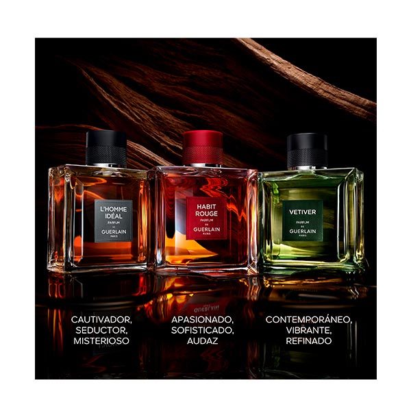 Inspirado por el carácter cálido e intenso del bourbon, Habit Rouge Le Parfum refleja el matiz de un acorde de ron. Representa una puerta de entrada a la tintura de vainilla elaborada en los talleres de Guerlain. Esta tintura de vainilla combinada con el pachulí aporta a la esencia Habit Rouge una profundidad renovada.